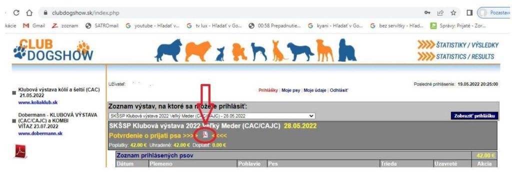 Milí priatelia – vystavovatelia, klubová výstava sa blíži. Potvrdenie o prijatí/vstupný list/návratku a katalogové číslo nájdete po prihlásení v online systéme (číslo je súčasťou návratky !) Je potreba si všetko vytlačiť a priniesť na výstavu.