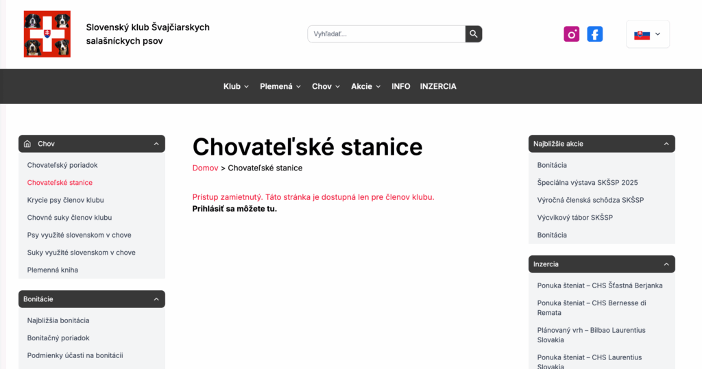 Niektoré podstránky sú určené iba pre členov klubu. Pokiaľ ste člen klubu, môžete sa prihlásiť na danej stránke kliknutím na odkaz „Prihlásiť sa môžete tu“.